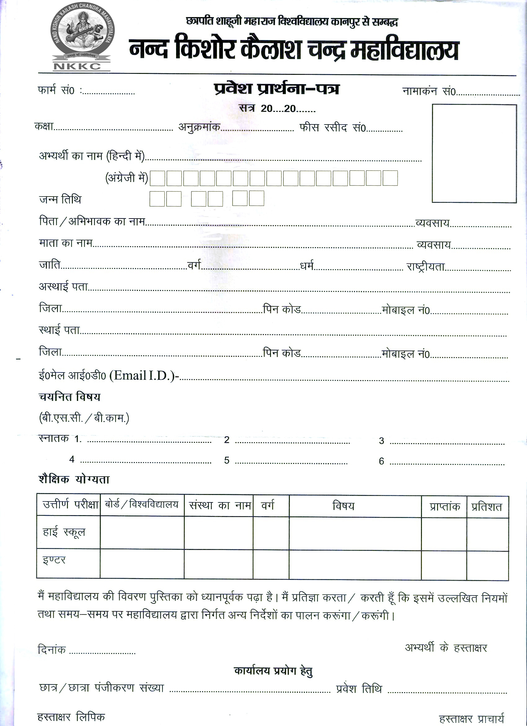 1. कानपुर विश्वविद्यालय द्वारा कालेज को आवंटित सीटों पर पारदर्शी सं प्रवेश कराना।
